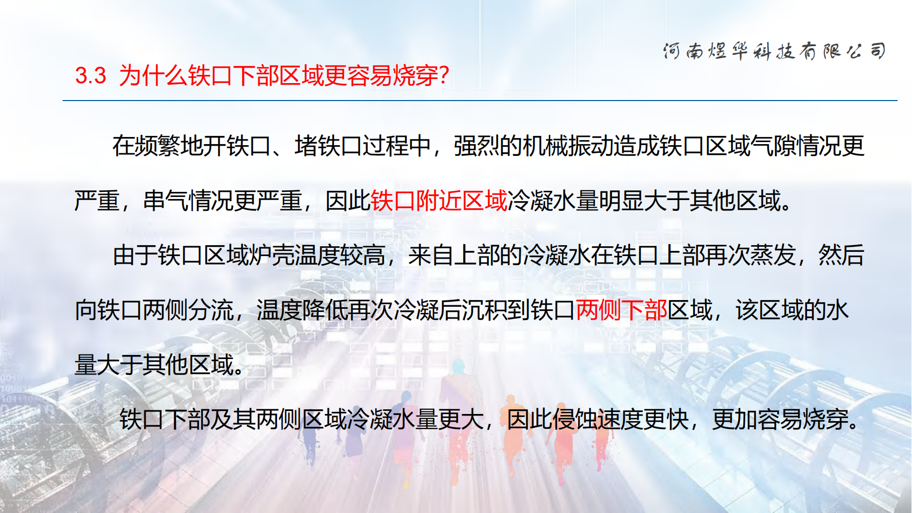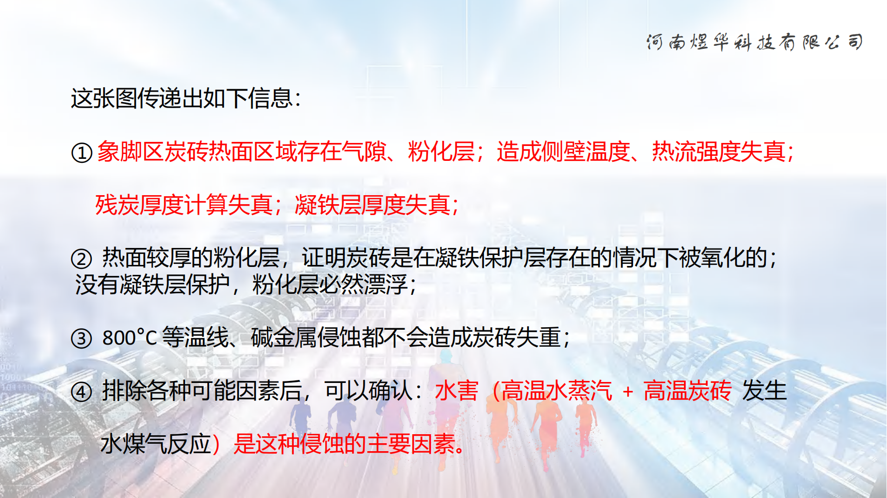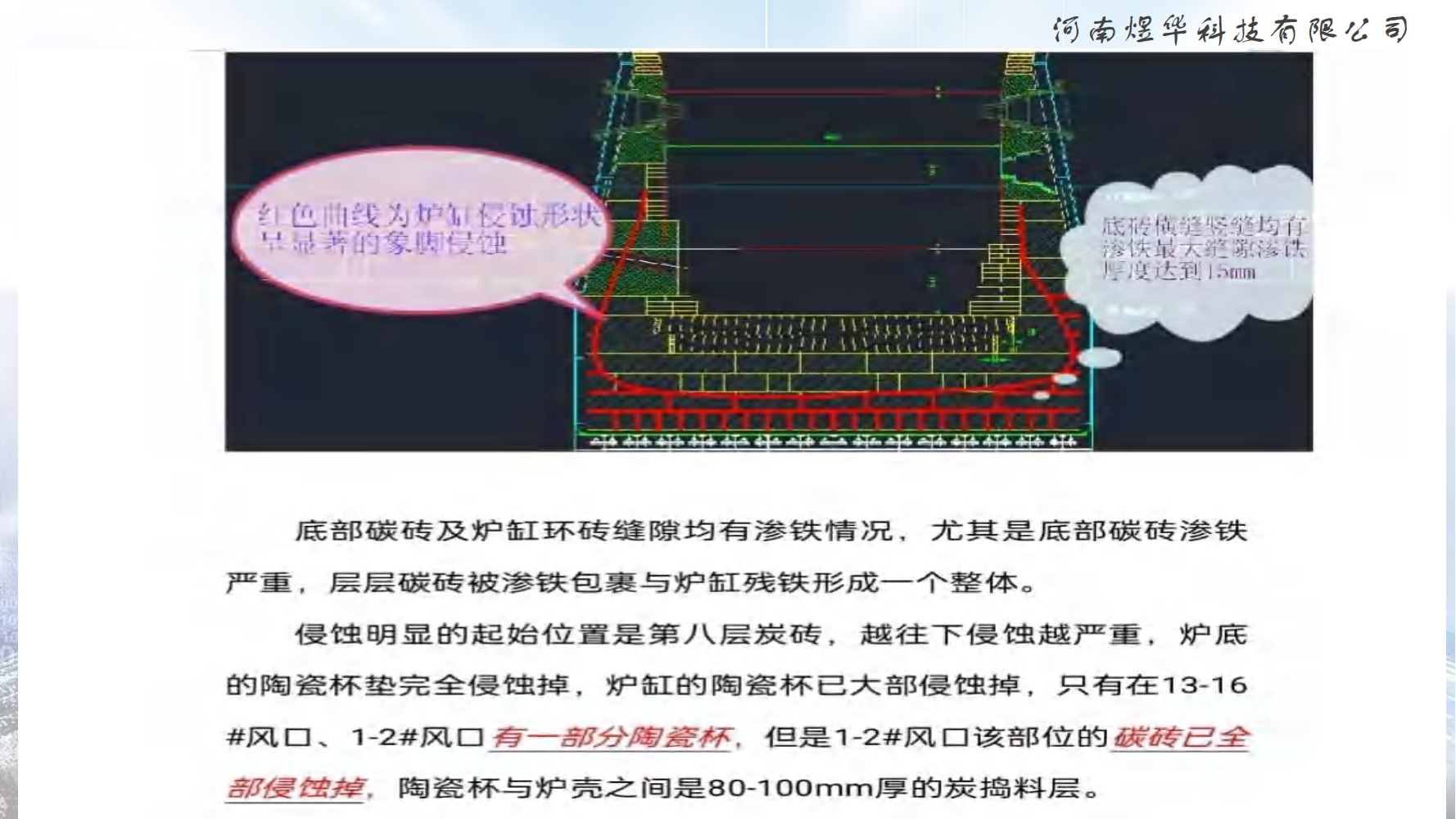 另一方面,象腳區(qū)應(yīng)該存在獨特的侵蝕因素,但煉鐵屆沒有發(fā)現(xiàn)。爐缸中部、爐底外圍與象腳區(qū)的工況條件相差不大,目前羅列的侵蝕因素是爐缸中部、爐底外圍同樣存在的共性侵蝕因素,但象腳區(qū)的侵蝕速度卻數(shù)倍于其他部位。象腳區(qū)一定存在獨特的侵蝕因素。
